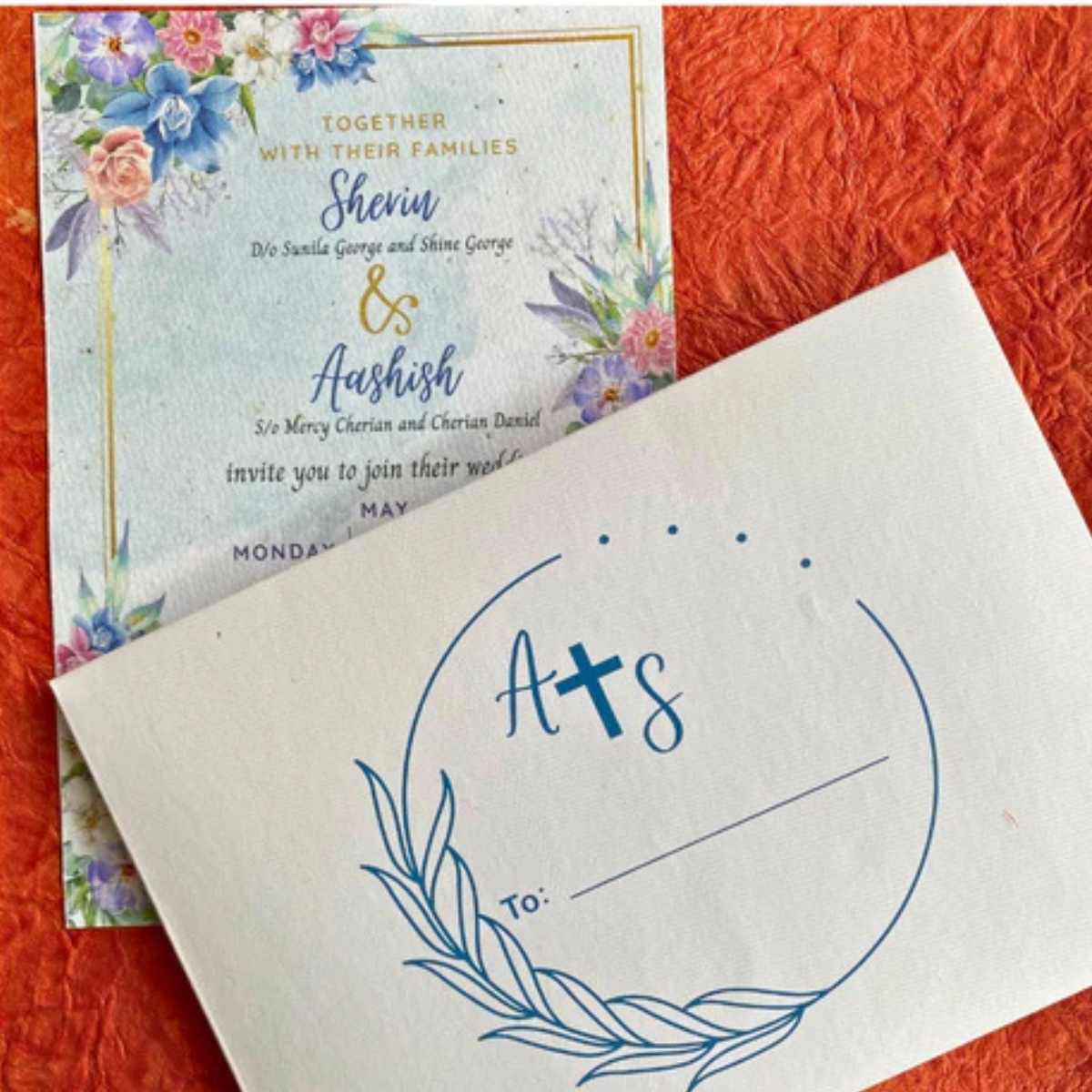 Elegant Christian Wedding Invitation Card – Floral Design on Eco-Friendly Seed Paper with Custom Envelope