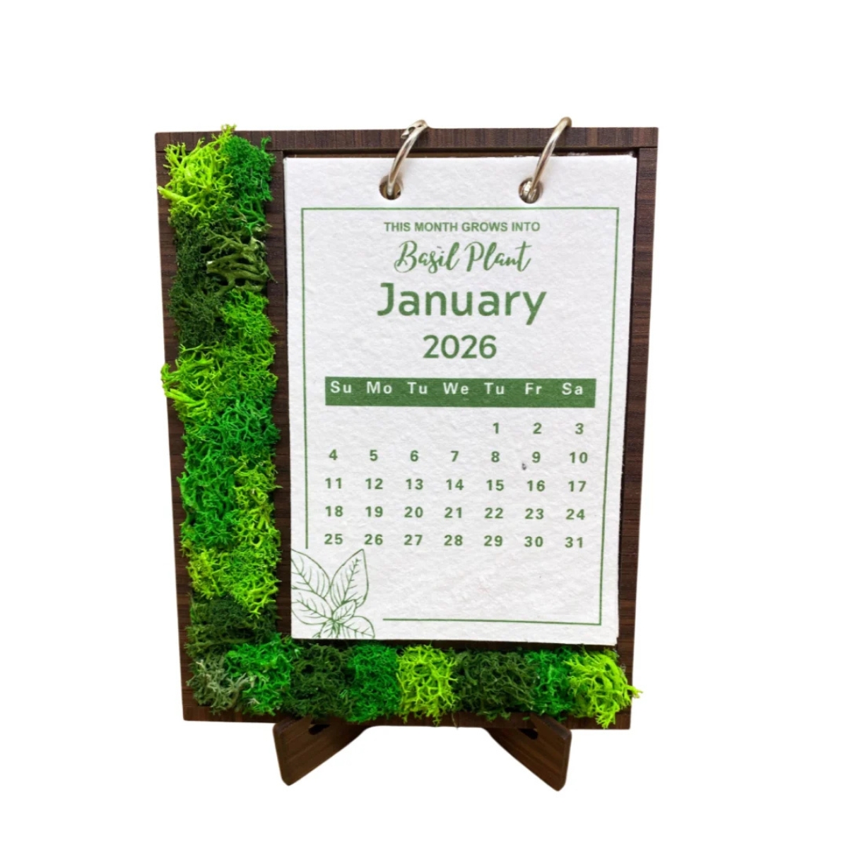 Add a natural touch to your desk with our 12+1 Page Plantable Seed Paper Calendar (SPC05) — designed to inspire sustainability and style.