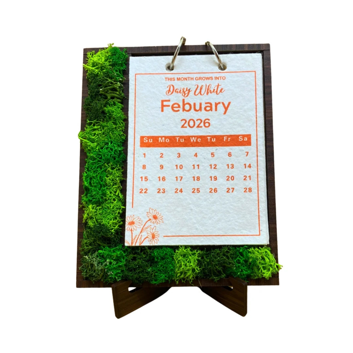12 + 1 Page Seed Paper Calendar – Each month printed on plantable eco-paper that grows into plants.